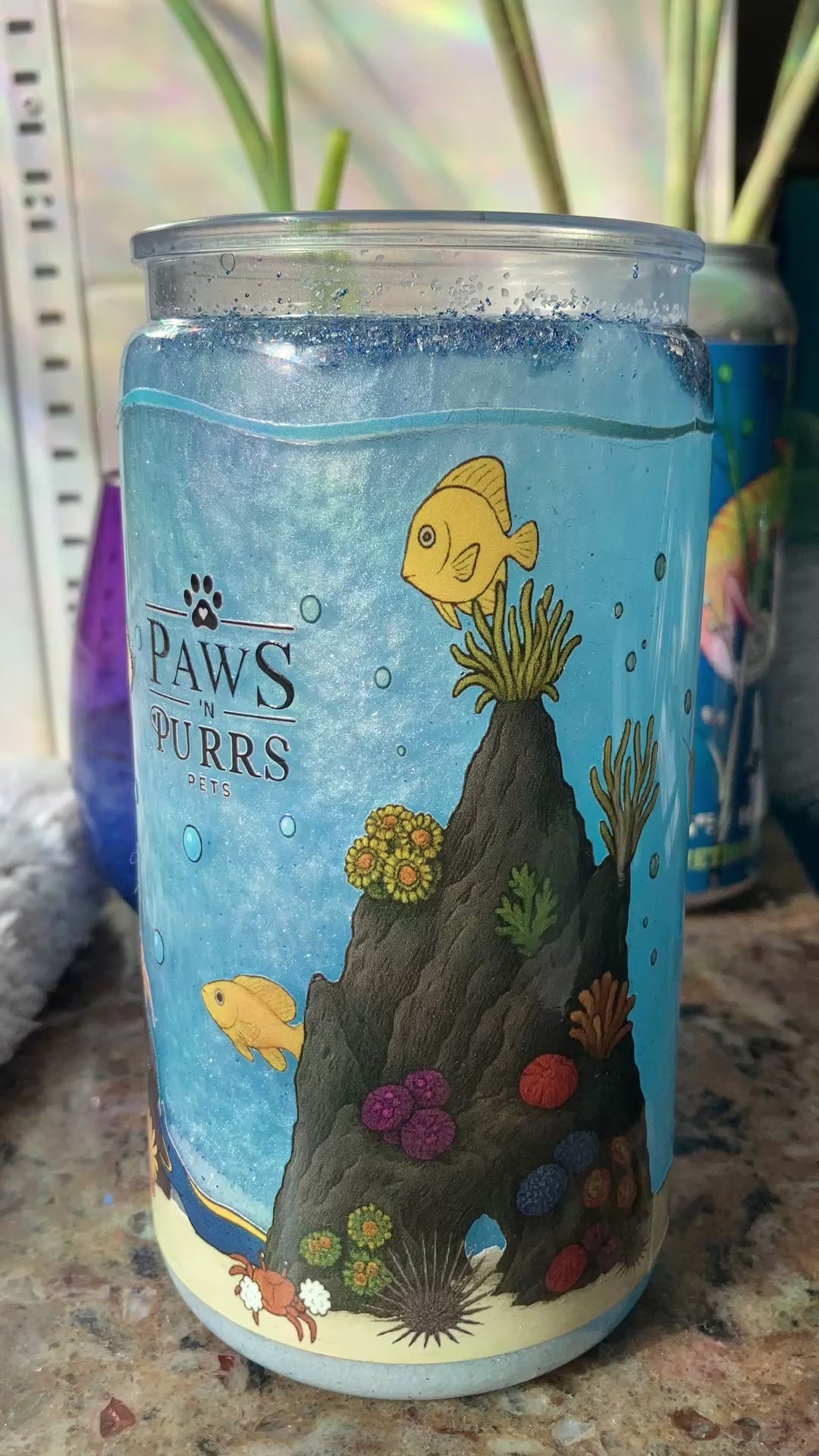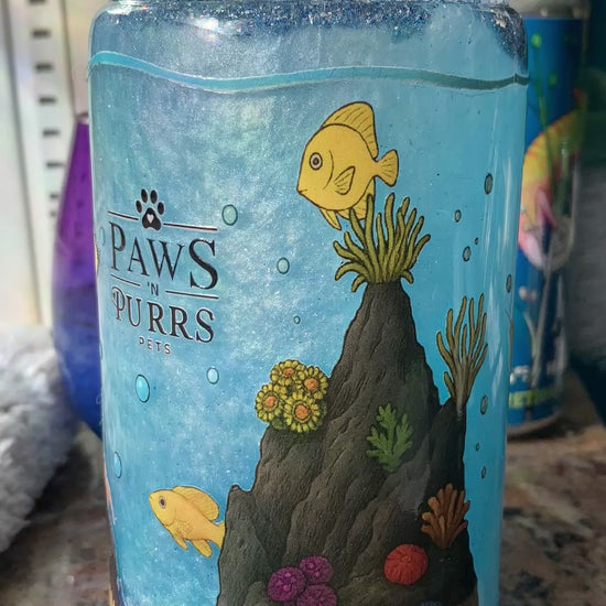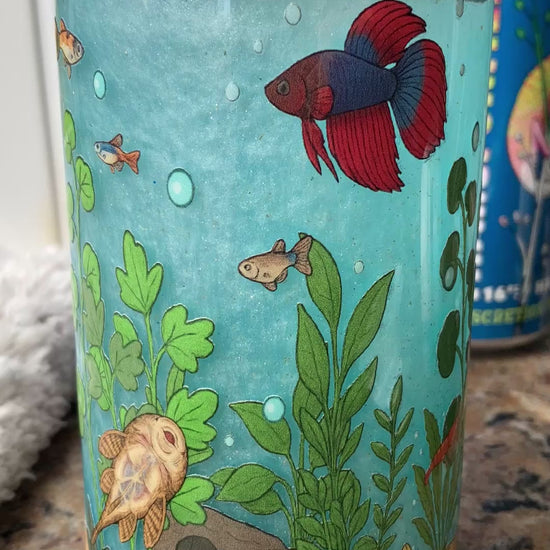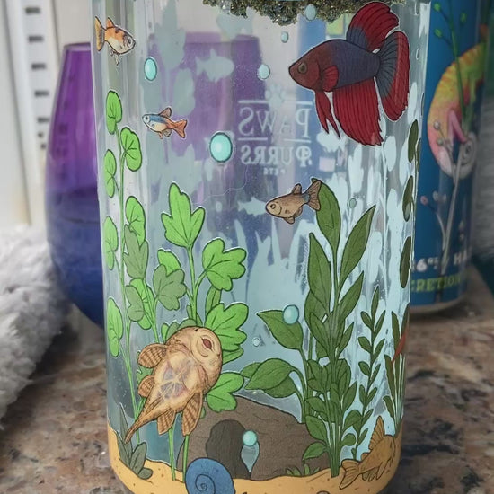 Take your aquarium love to the next level with these mesmerizing snow globe tumblers, inspired by our popular Freshwater and Saltwater Aquarium sipper designs. Each tumbler features a vibrant wraparound aquarium scene, from freshwater favorites like bettas, guppies, shrimp, plecos, and tetras to saltwater icons like clownfish, tangs, eels, snails, and reef life.