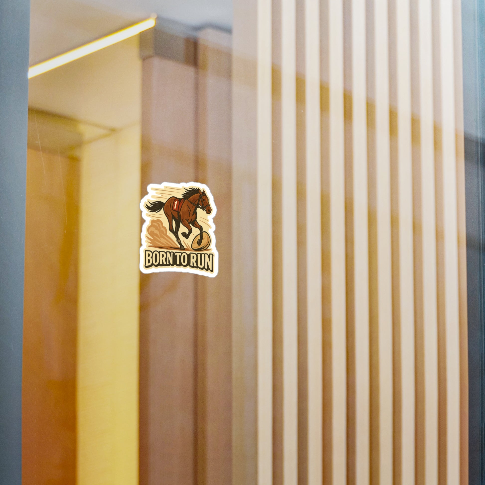Capture the thrill of the racetrack with our Born to Run Thoroughbred Horse Sticker. This dynamic design shows a powerful thoroughbred in full stride, racing ahead with dust kicking up around its hooves. Complete with a rider’s saddle and the number 1 racing marker, it perfectly captures speed, spirit, and victory. A bold choice for horse lovers, equestrians, and racing fans, this sticker adds motion and energy to any surface you place it on.