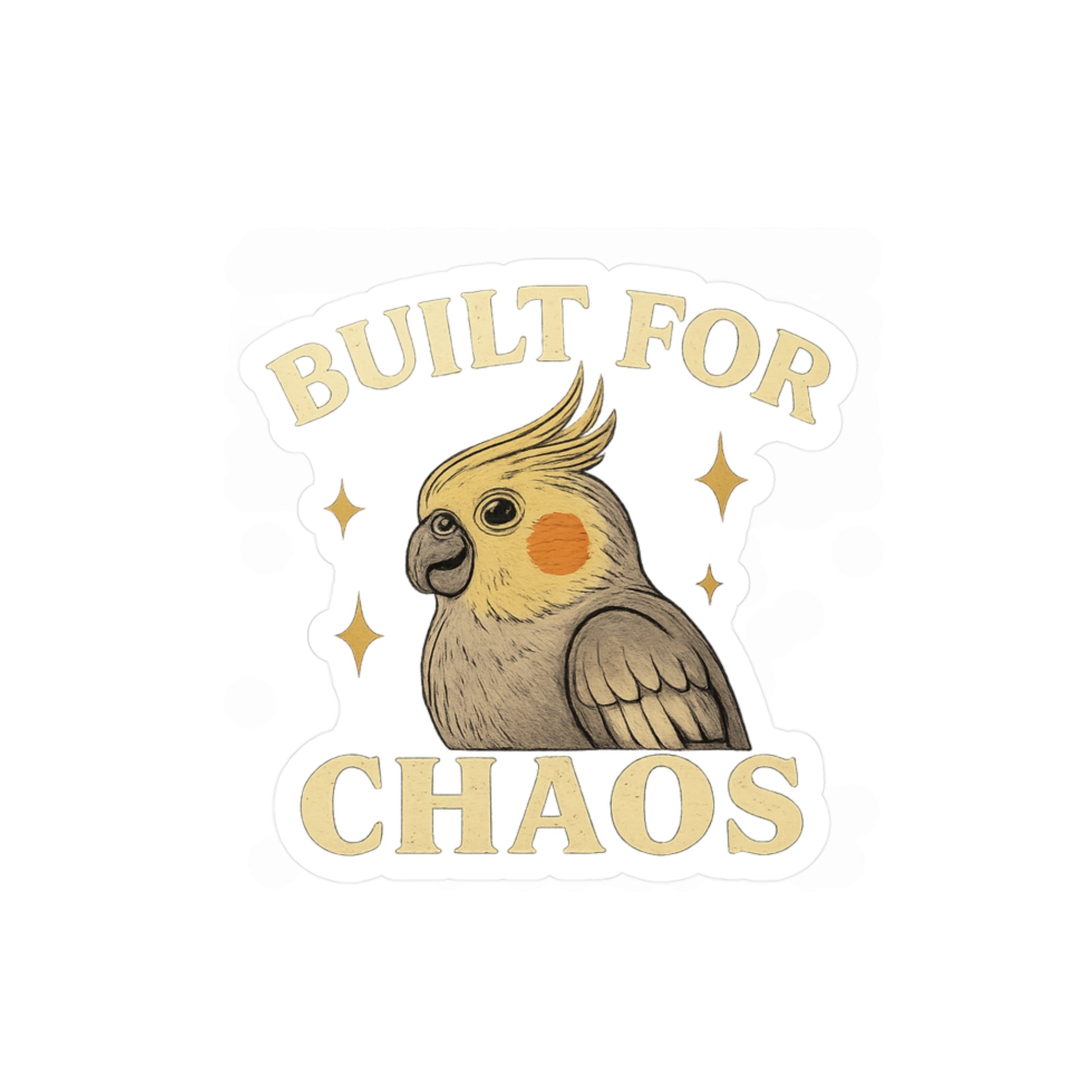 Celebrate the adorable energy of your feathered tornado with this "Built for Chaos" cockatiel sticker. Featuring a cheerful cockatiel with signature orange cheeks and a sparkle of mischief in its eye, this playful design is perfect for bird lovers who know their flock runs on noise, flair, and a little chaos. Inspired by Aurora, resident in chief at Pet Emporium in Capitola, CA.