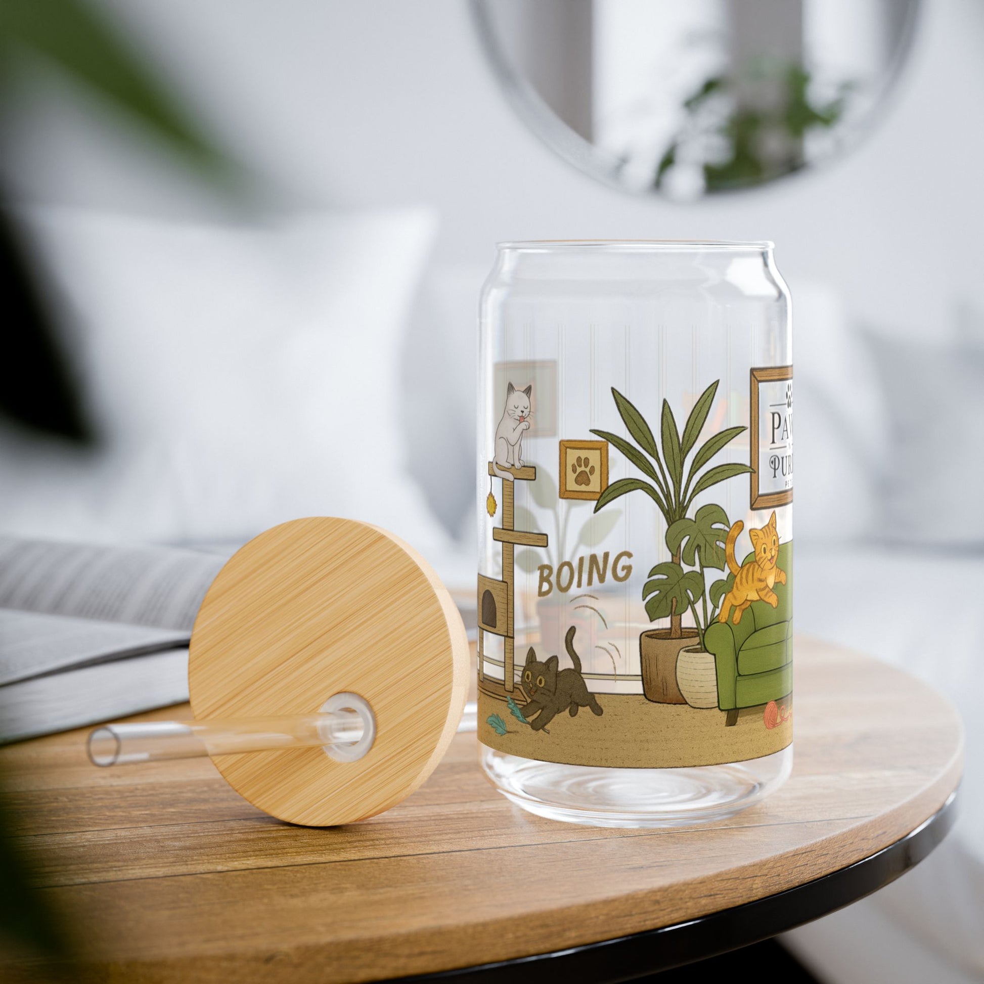 Cat House Zoomies – 16oz Sipper Glass with Bamboo Lid and Straw