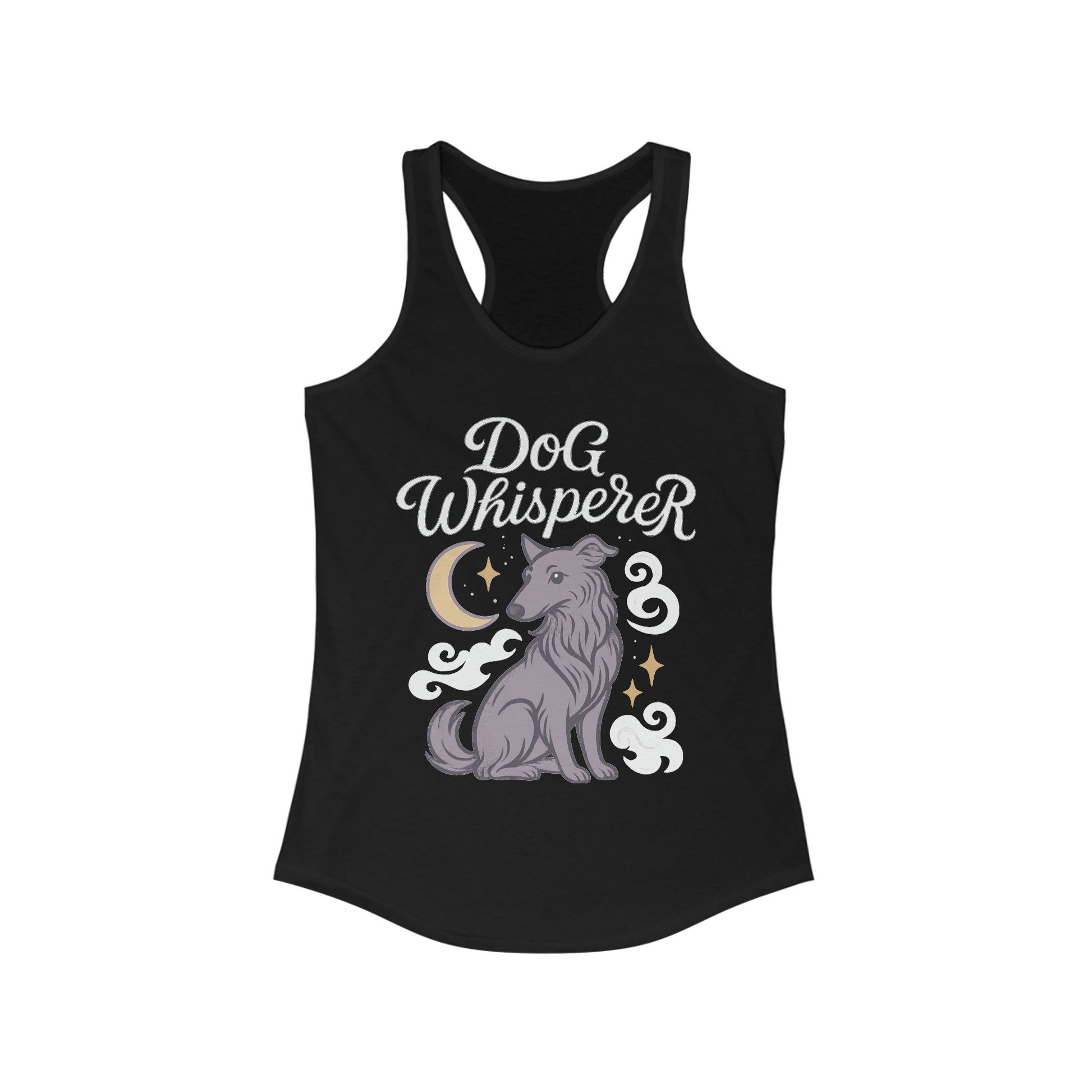 Embrace the magic of the season with our seasonal Dog Whisperer Women’s Racerback Tank Top, a limited-time design from the Mystical Pets series. Showcasing a graceful dark purple hound surrounded by celestial clouds, stars, and a glowing moon, this soft and breathable tank is perfect for dog lovers who feel a deeper, mystical bond with their canine companions.