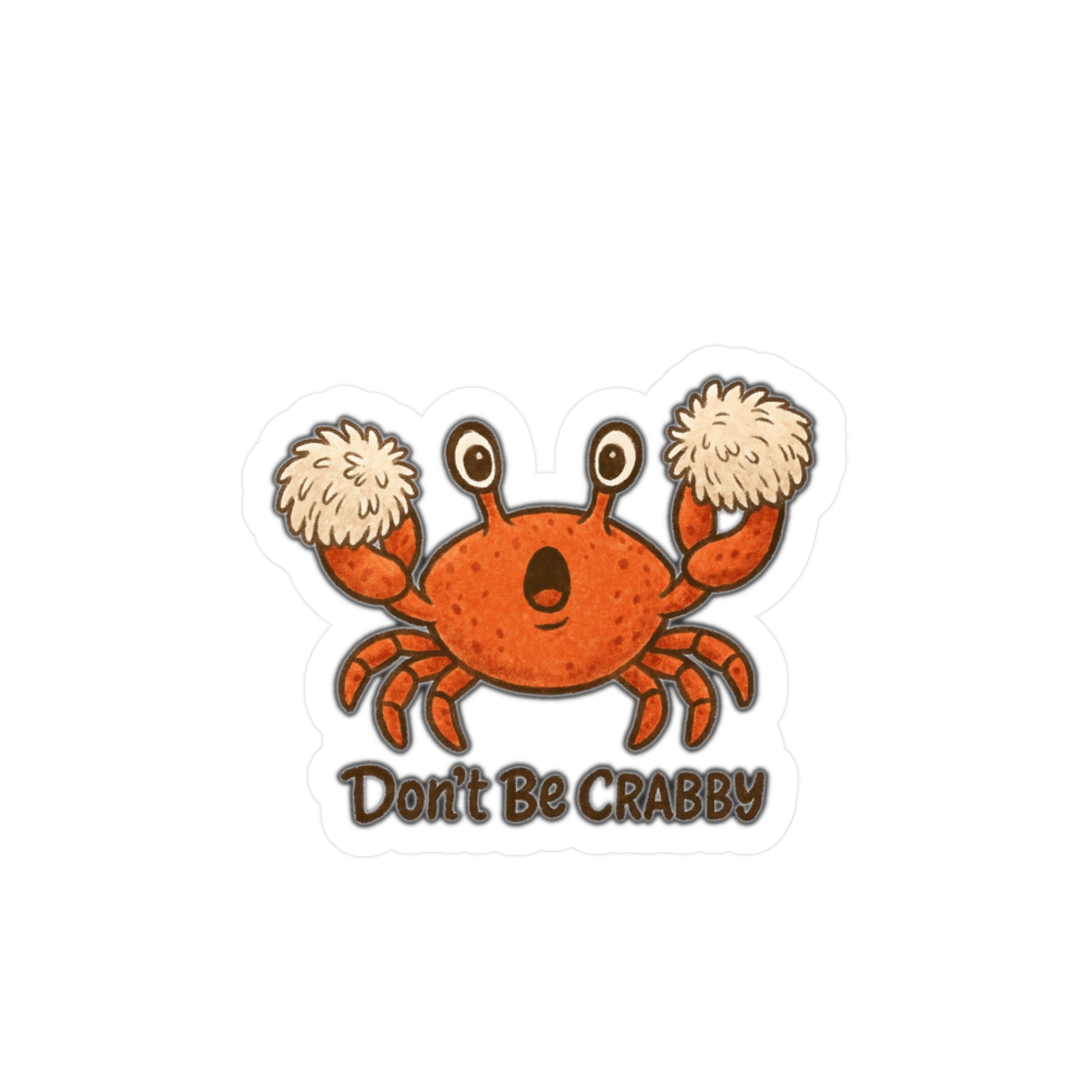 This playful sticker features a cute pom pom crab and a gentle reminder we all need from time to time: don’t be crabby! With a mix of charm and humor, it is a fun way to spread a little positivity wherever you stick it.