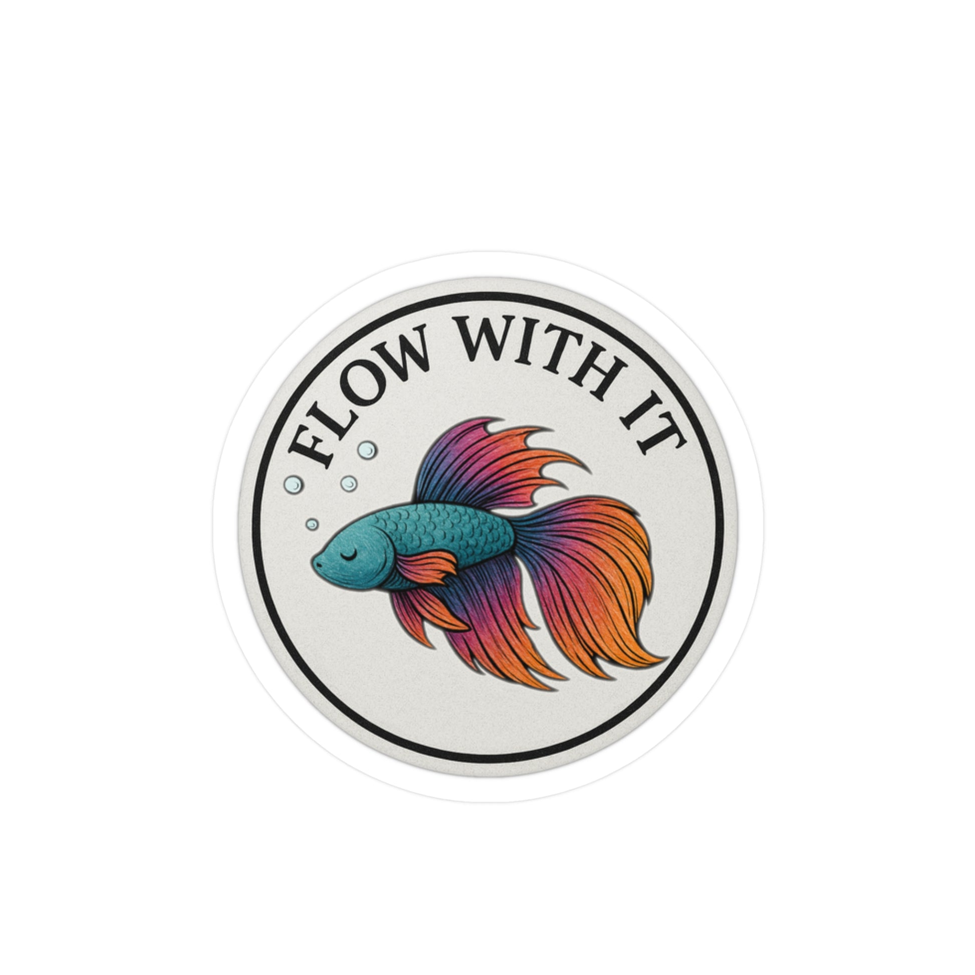 This "Flow With It" Betta fish sticker is a whimsical, peaceful addition to any space or item. Whether you're a fish tank hobbyist, aquarium enthusiast, or just need a gentle reminder to relax, this sticker blends charm with resilience.