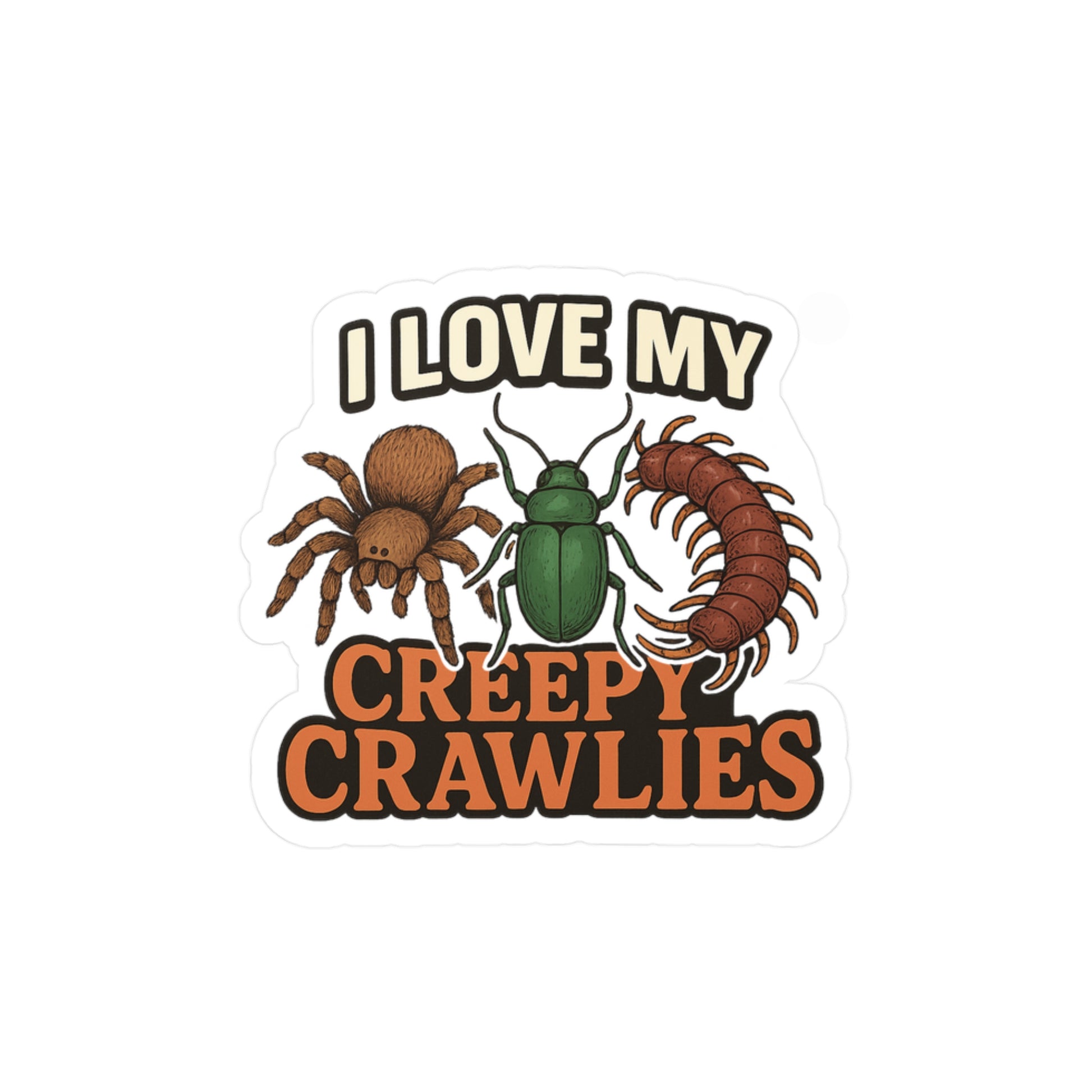 Show your love for the wonderfully weird with this bold and colorful “I Love My Creepy Crawlies” sticker. Featuring a charming lineup of a tarantula, beetle, and centipede in earthy tones and playful hand-drawn style, it’s perfect for exotic pet lovers, bug enthusiasts, and anyone proud of their misunderstood companions.