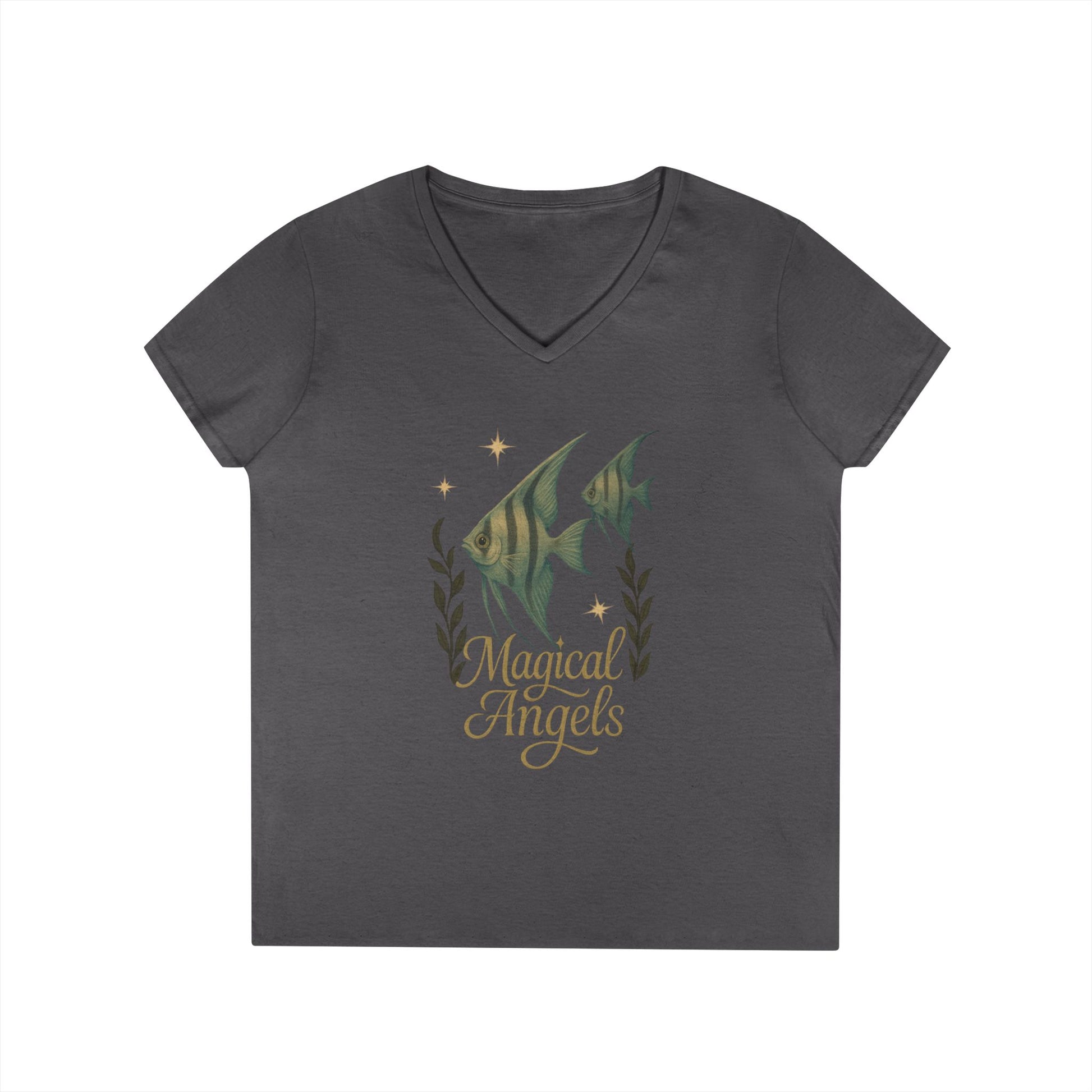 Bring a touch of underwater enchantment to your everyday look with our Magical Angels Women’s V-Neck T-Shirt. Featuring a graceful angelfish design inspired by the serene beauty of aquatic life, this tee offers both comfort and charm. Its soft 100% cotton fabric feels light and breathable, making it perfect for warm days, relaxed weekends, or casual outings. Whether you’re heading to the beach, meeting friends, or simply enjoying a cozy day at home, this versatile v-neck pairs easily with jeans, shorts, or skirts. A thoughtful gift for fish lovers, aquarists, or anyone drawn to whimsical designs, it’s a delightful way to wear a little magic wherever you go.