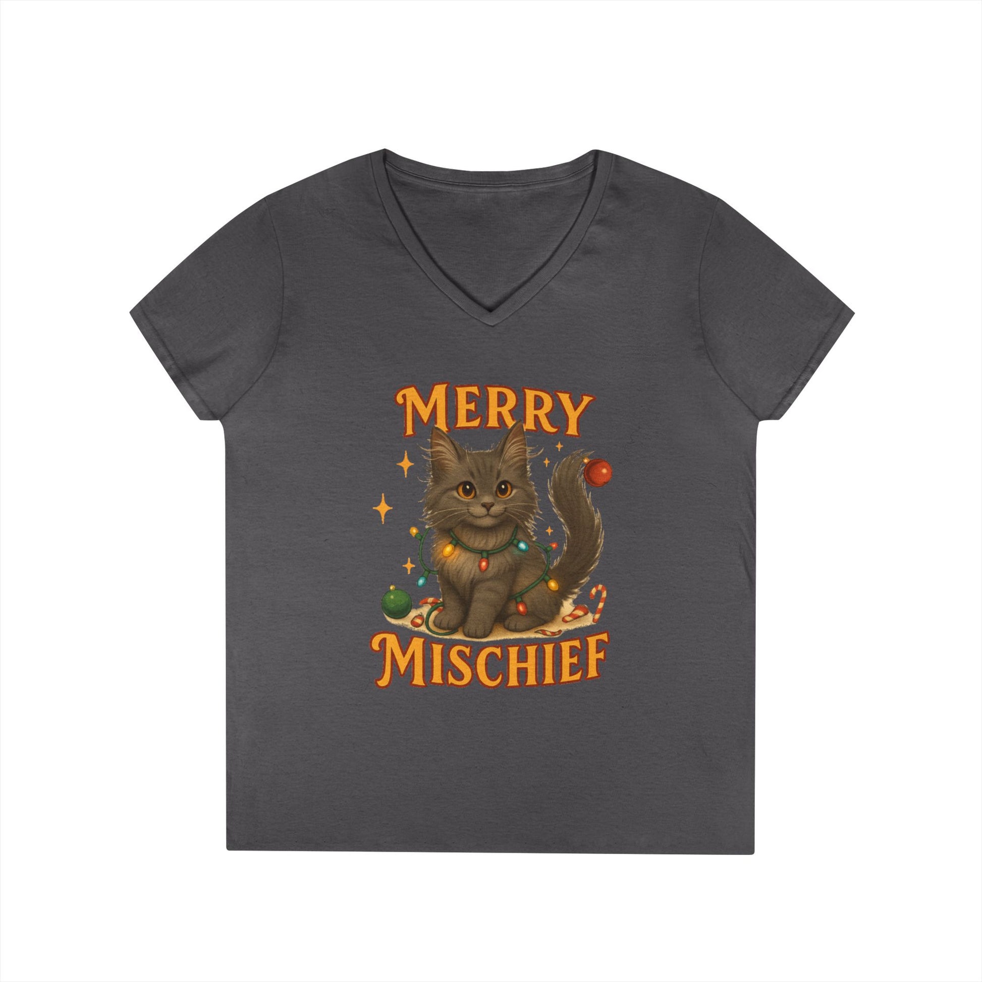 Merry Mischief Cat - Women's V-Neck T-Shirt