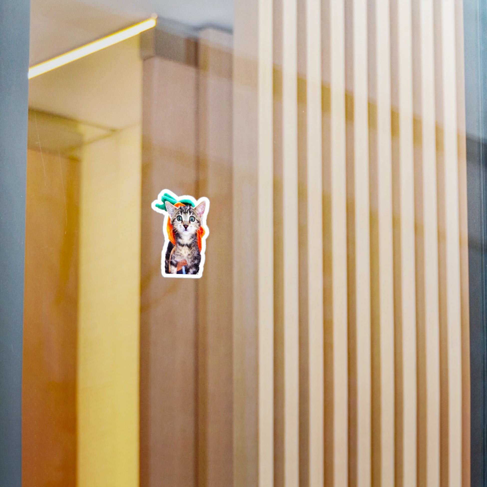 Meet the mini 2" version of the Pumpkin Head Kitten, our adorable Paws 'N Purrs Pets mascot, Dawn, dressed in seasonal style with a cozy pumpkin hat. This sticker brings together everything we love: kittens, whimsy, and a touch of year-round Halloween magic. It is a perfect choice for cat lovers, fall fans, or anyone who enjoys a playful design with personality.
