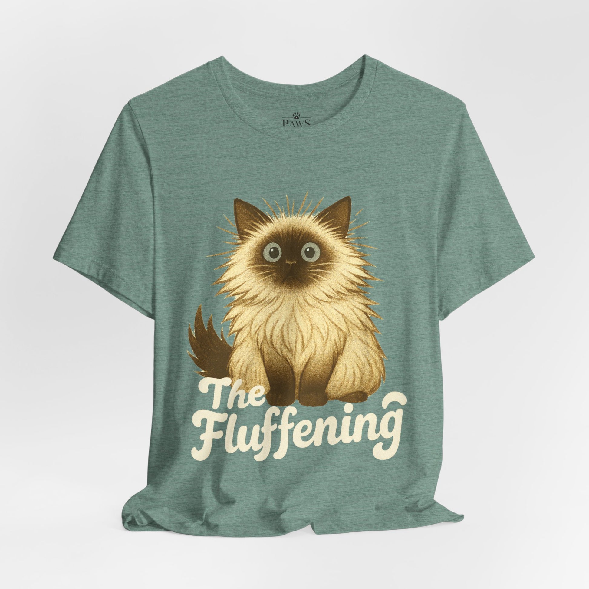Get ready to embrace the floof! "The Fluffening" shirt celebrates the majestic power of maximum puff with an irresistibly fluffy cat that looks both regal and slightly overwhelmed by its own volume. With its playful vintage-style artwork and cozy vibe, this design is perfect for cat lovers who appreciate equal parts humor and fluff.