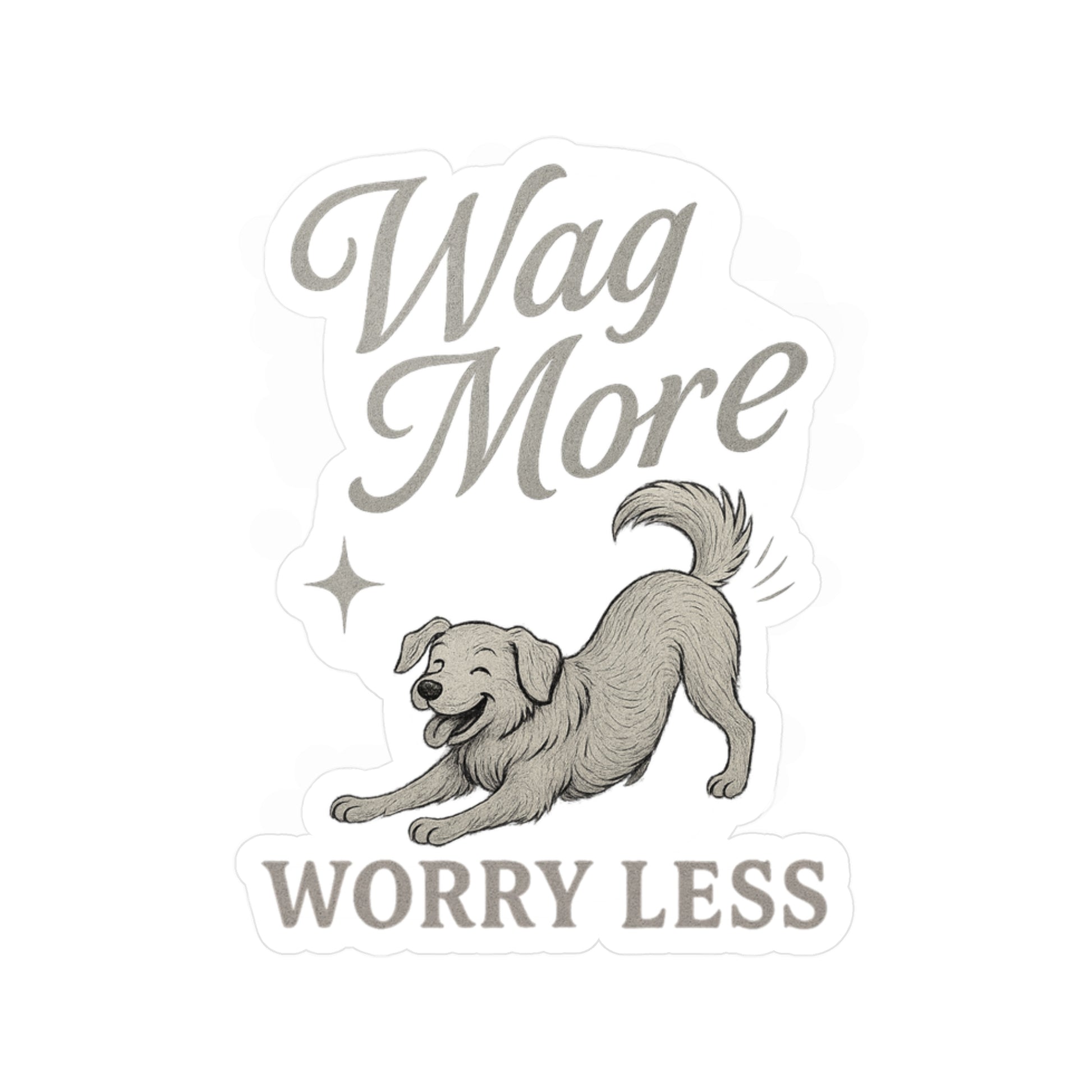 Let your daily reminders come with a wag and a wink. This "Wag More, Worry Less" sticker is part of our Worry Less, Life Lessons Series, celebrating the simple wisdom of our four-legged companions. Featuring an off-white dog illustration with a warm, uplifting message, it's designed to brighten your space and your spirit.